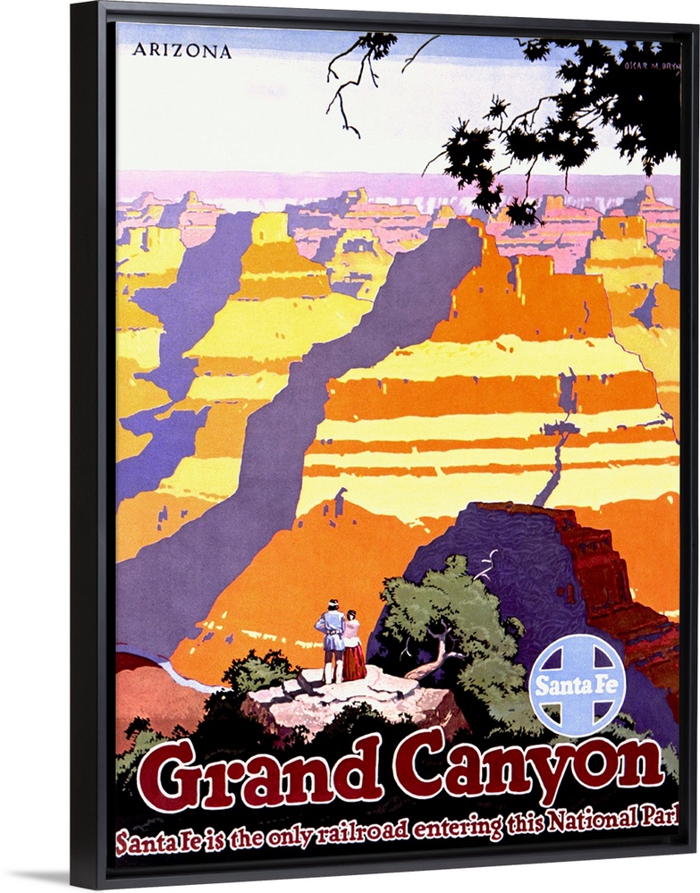 <p>Grand Canyon, Arizona. A couple is admiring the power and magnificence of the Grand Canyon National Park in Arizona. Santa Fe is the only railroad entering this National Park.</p>