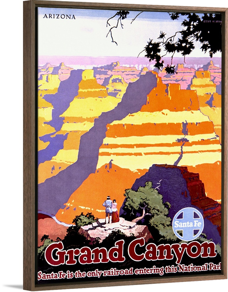 <p>Grand Canyon, Arizona. A couple is admiring the power and magnificence of the Grand Canyon National Park in Arizona. Santa Fe is the only railroad entering this National Park.</p>