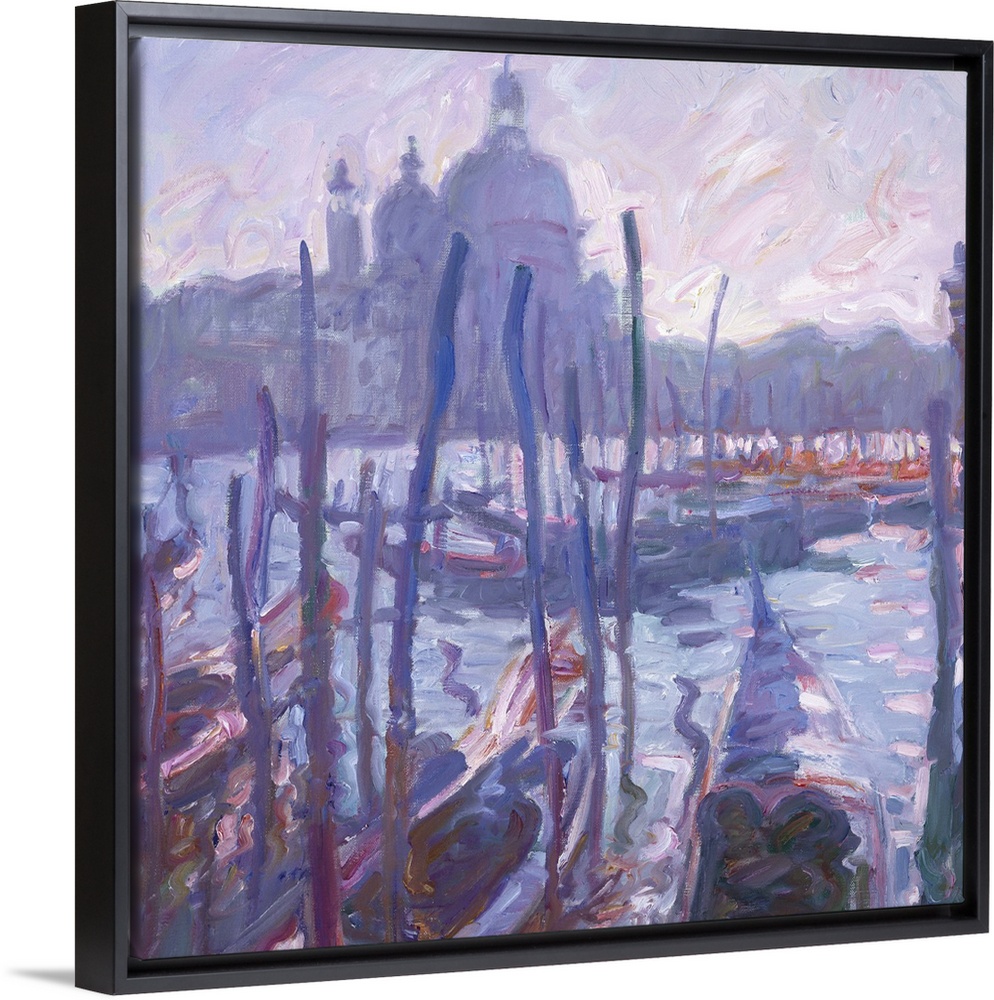 Cathedral Art John Asaro Blue Wall Art Cityscapes Lilac and Lavender Contemporary Art Rivers, Lakes, and Oceans Fine Art Painting Venice Gondola