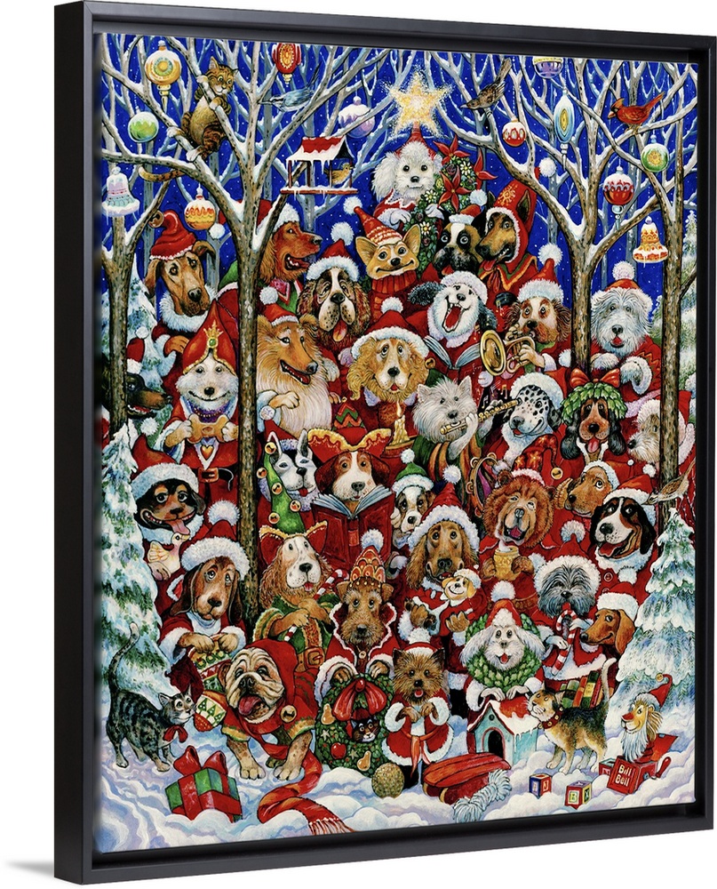 Art Bill Bell Wildlife Decorative Art Holidays Christmas Santa Claus Painting Wildlife Dog