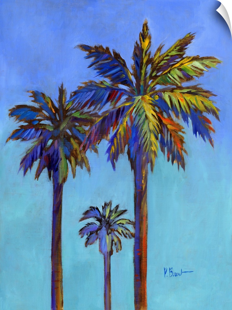 <p>Contemporary painting of three palm trees against a bold blue sky.</p>