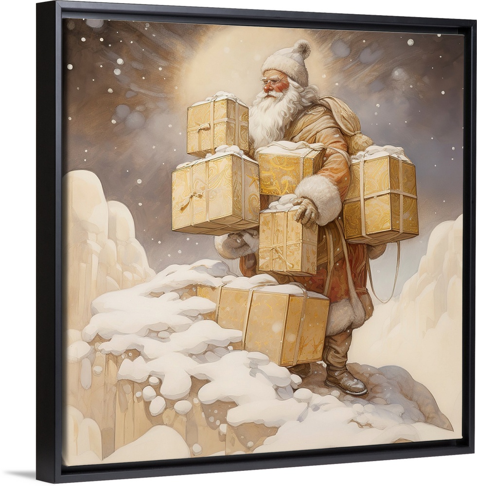 Contemporary Art White and Gold Holiday Art Holidays Christmas Santa Claus Imagine It Images Painting People