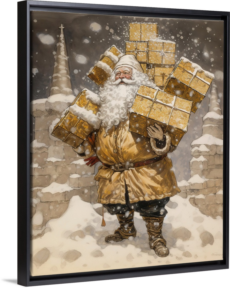 Contemporary Art White and Gold Holiday Art Holidays Christmas Santa Claus Imagine It Images Painting People