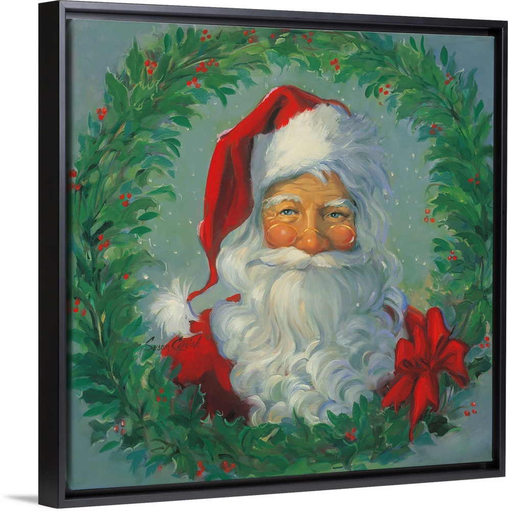 <p>Portrait of Santa surrounded by a wreath.</p>