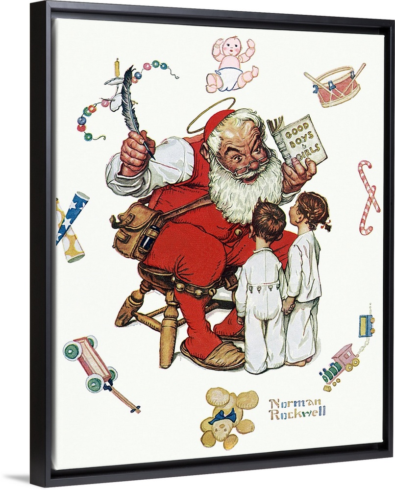 <p>Back in the 1800's, the image of Santa Claus was not portrayed as the round, jolly, bearded man that we know today. Throughout the latter half of the 19th century, Santa morphed through a variety of different looks. Norman Rockwell played a large role in establishing Santa's look as we know it today and is well-known for depicting the man who is emblematic of the Christmas season countless times throughout his career. Approved by the Norman Rockwell Family Agency</p>
