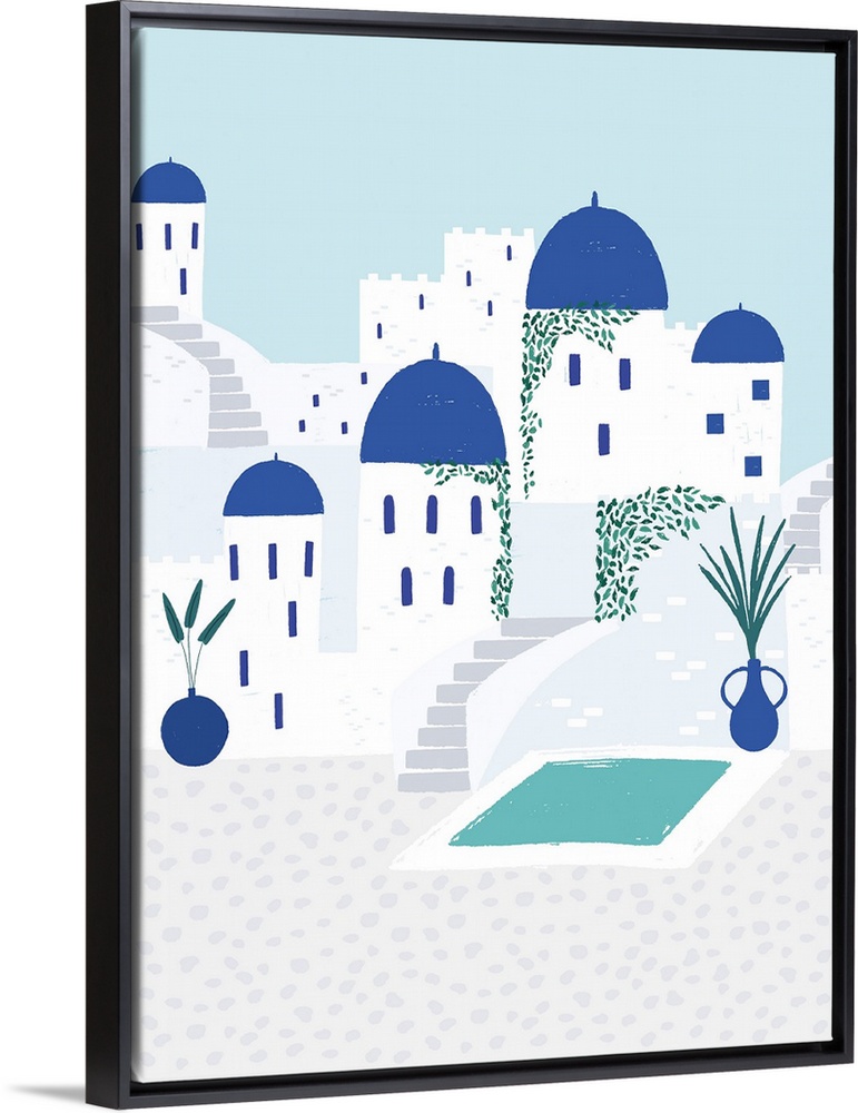 Art Royal Blue Cityscapes Minimalist Art Greece Santorini