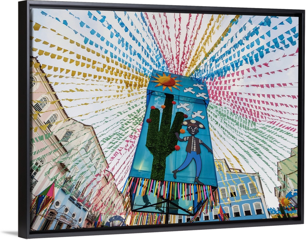 <p>Sao Joao Festival Decorations on Largo do Pelourinho, low angle view, Salvador, State of Bahia, Brazil</p>