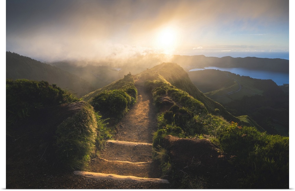 <p>Sao Miguel island, Azores, Portugal, Miradouro da Boca do Inferno at sunset.</p>