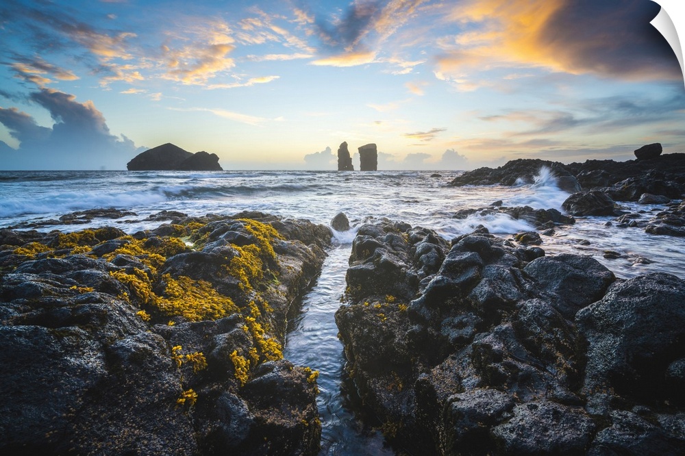 <p>Sao Miguel island, Azores, Portugal, Sea stacks and seascape at Mosteiros.</p>