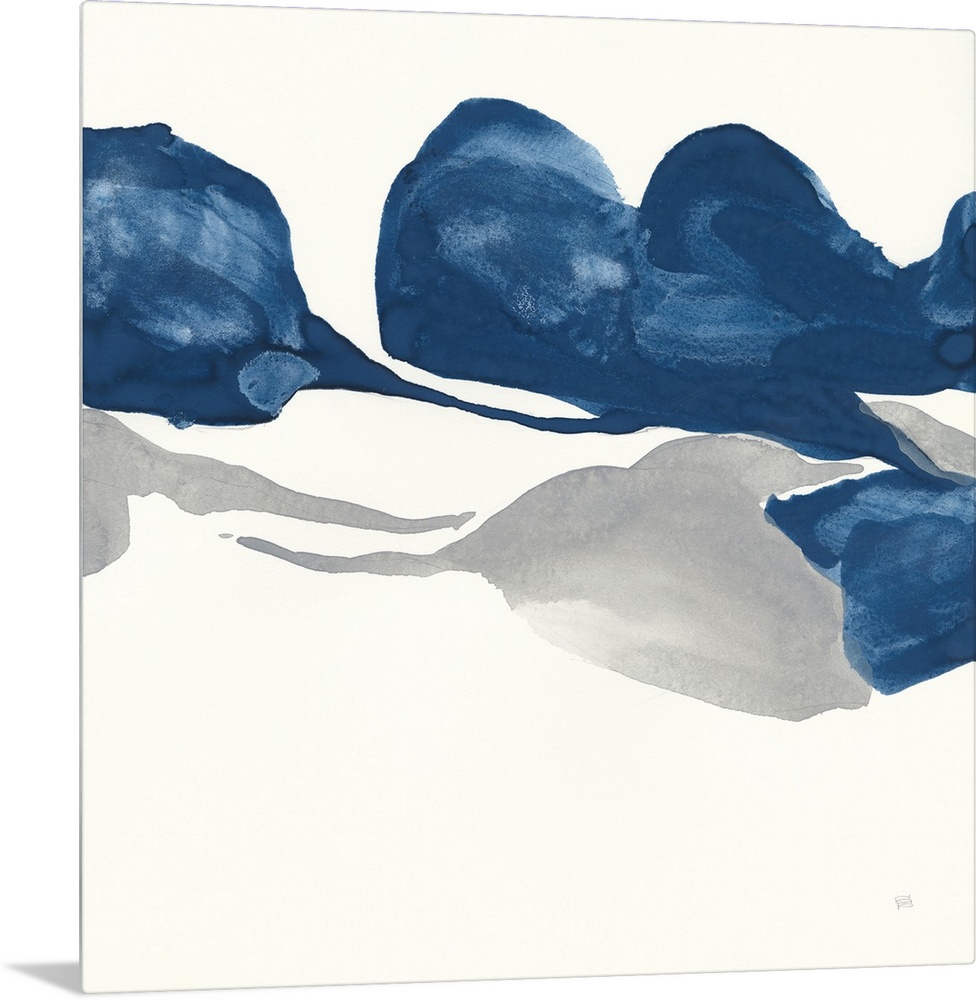 <p>A square abstract painting in textured tones of blue and grey.</p>
