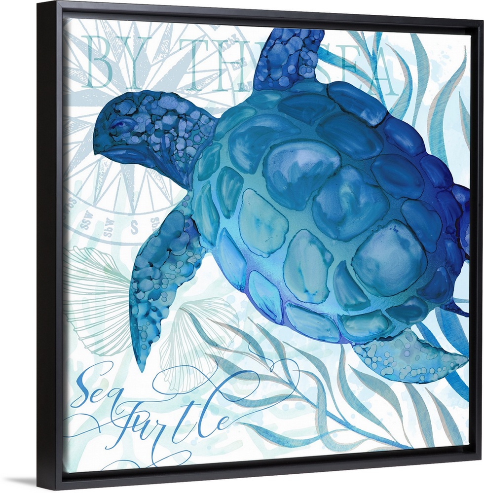 Art Blue Wall Art Decorative Art Painting Nicole Tamarin Watercolor Wildlife Marine Life Turtle