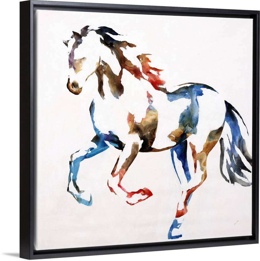 <p>Square artwork with a colorful silhouette of a horse on a white background.</p>