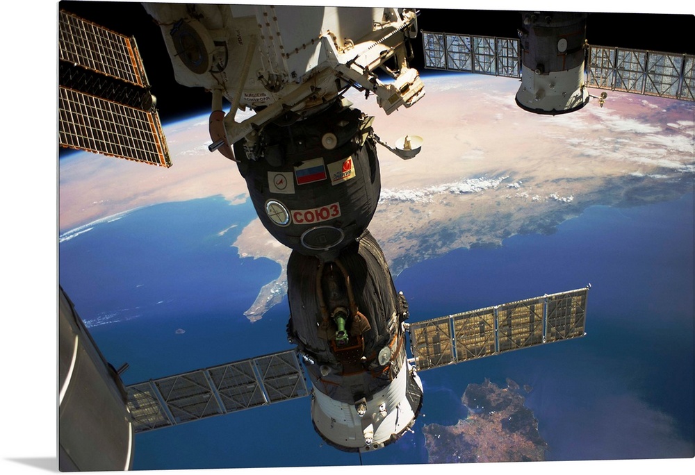 <p>Satellite in space with view of Italy and Africa on Earth</p>