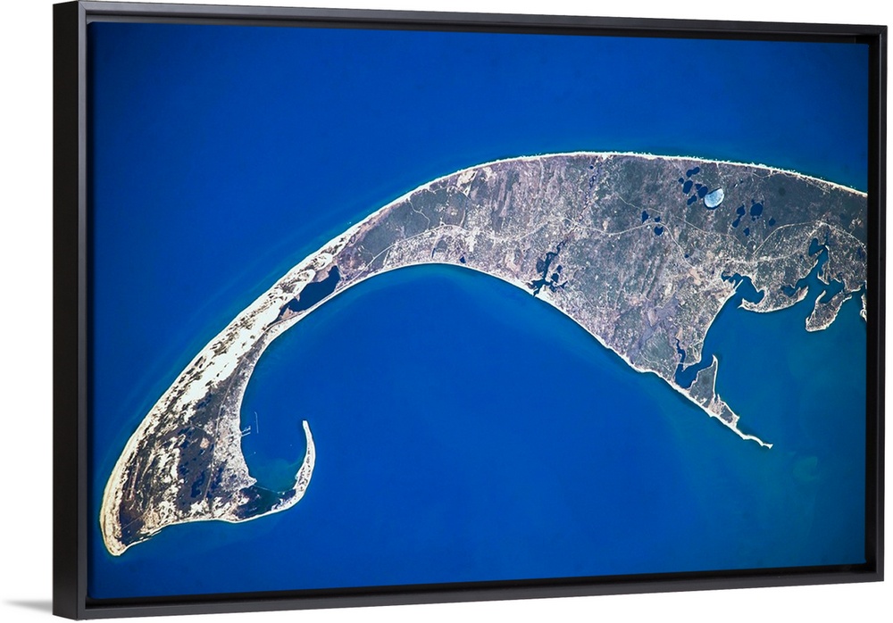<p>Satellite view of Cape Cod National Seashore area in North Atlantic Ocean, Massachusetts, USA</p>