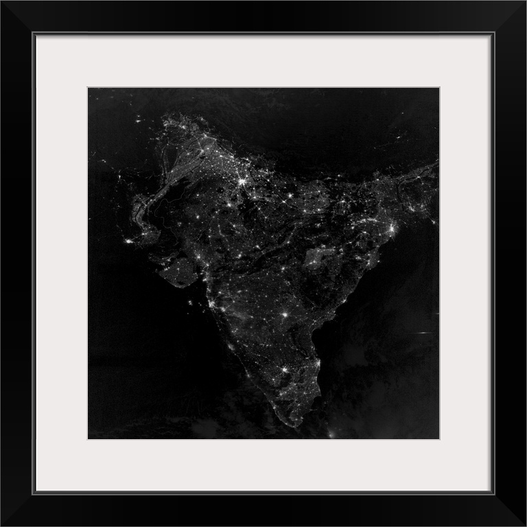 <p>November 12, 2012 - Satellite view of city, village, and highway lights in India.</p>