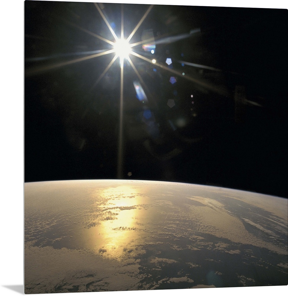 <p>Satellite view of the sunrays falling on the earth's surface</p>