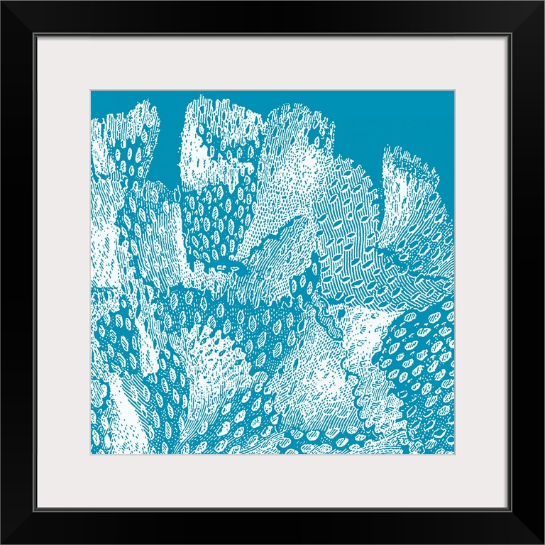 <p>Square wall art featuring outlines of coral in white on a bright aqua background</p>