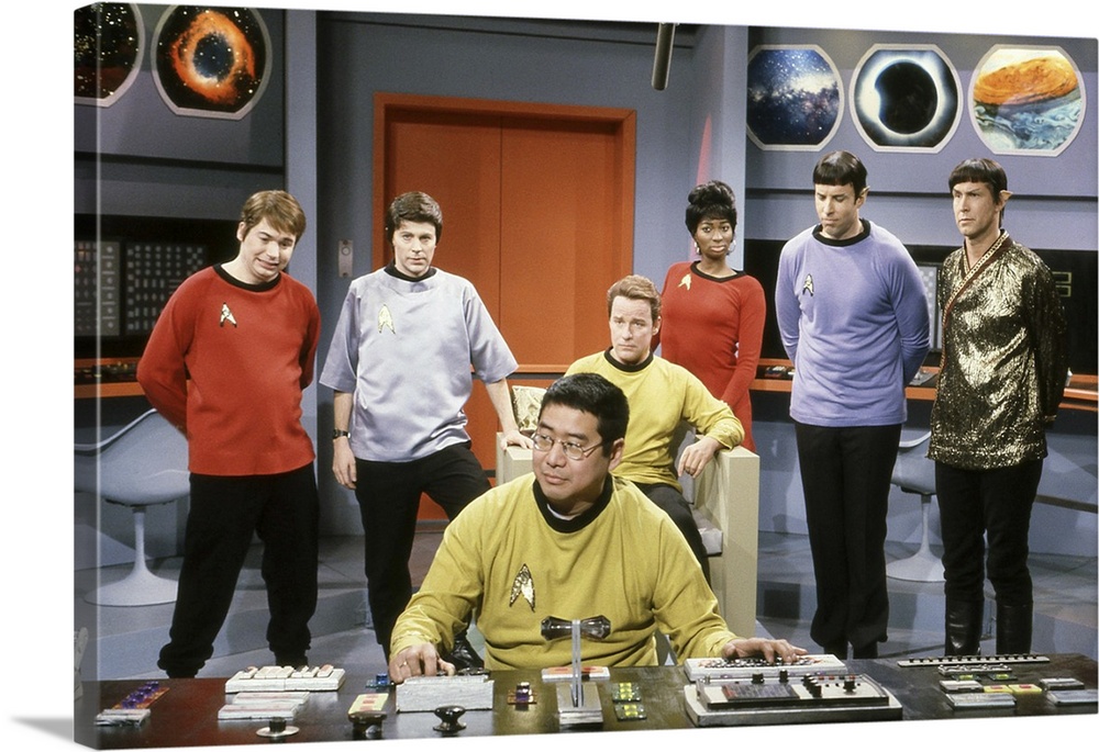 <p>Saturday Night Live, Back From Left: Mike Myers, Dana Carvey, Phil Hartman (Sitting), Ellen Cleghorne, Kevin Nealon, Chevy Chase, 'Star Trek', (Season 17, Ep. 1711, Aired Jan. 18, 1992), 1975.</p>