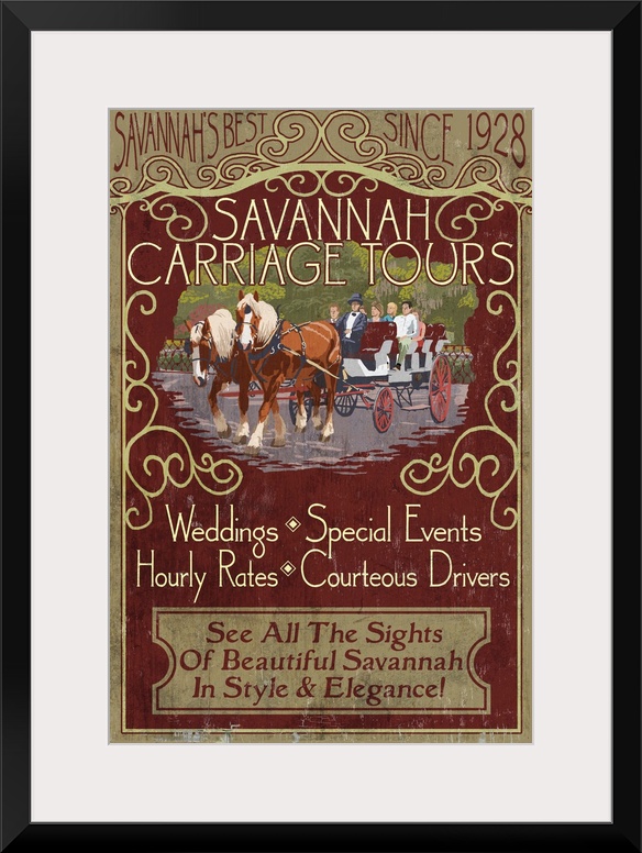 <p>Retro stylized art poster of vintage sign for carriage tours, with a horse drawn carriage.</p>