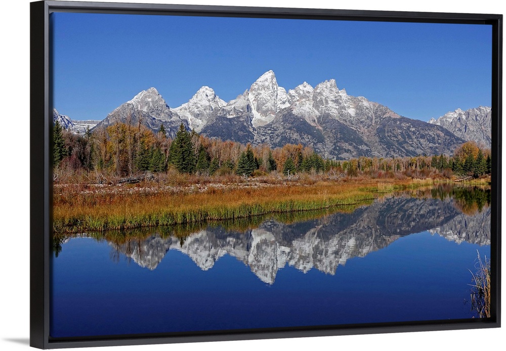 <p>The Grand Tetons reflected on the Snake river near Jackson, Wyoming.</p>