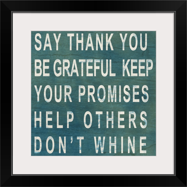 <p>This square decorative typographic art work has a motivational message and family rules in five lines of text.</p>