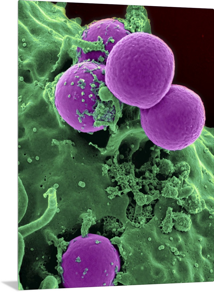 <p>Scanning electron micrograph of a human neutrophil ingesting MRSA.</p>