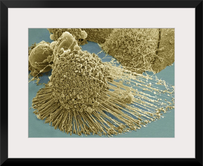 <p>Scanning electron micrograph of an apoptotic HeLa cell. Zeiss Merlin HR-SEM.</p>