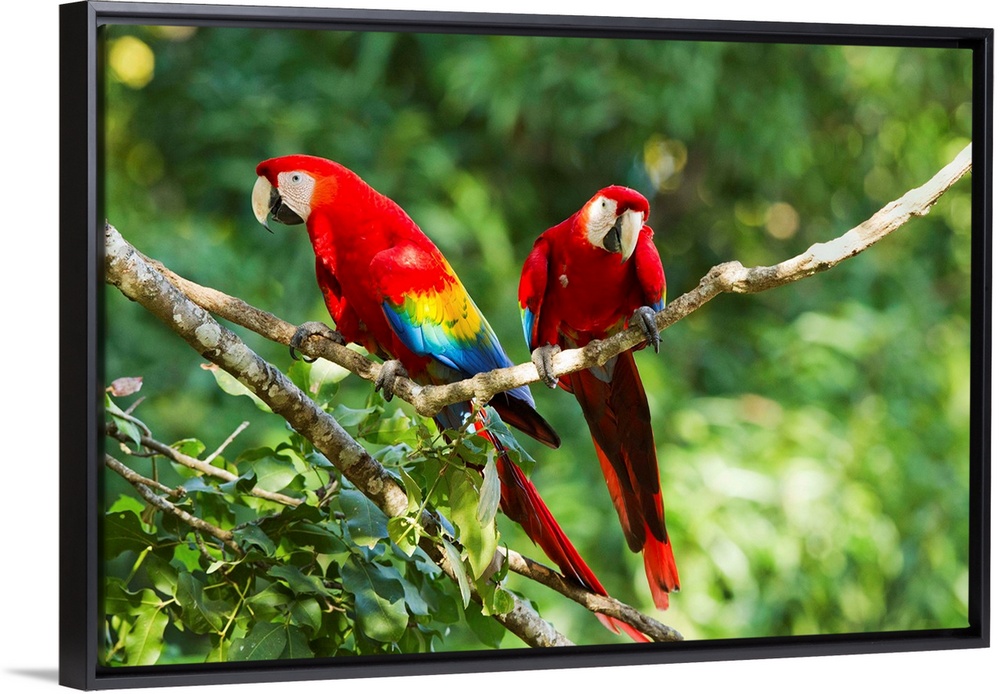 <p>Costa Rica, Guanacaste Province, Canas, Scarlet Macaws (Ara macao) resting on perch in trees</p>