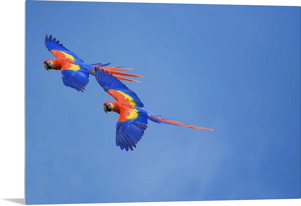 <p>Scarlet Macaws (Ara macao) on flight, Corcovado National Park, Costa Rica</p>