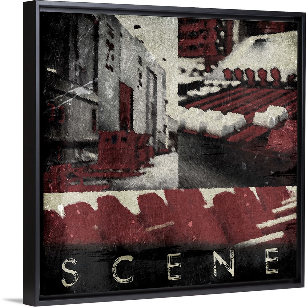 <p>A vintage square theater art piece with the word ?Scene? at painted the bottom.</p>