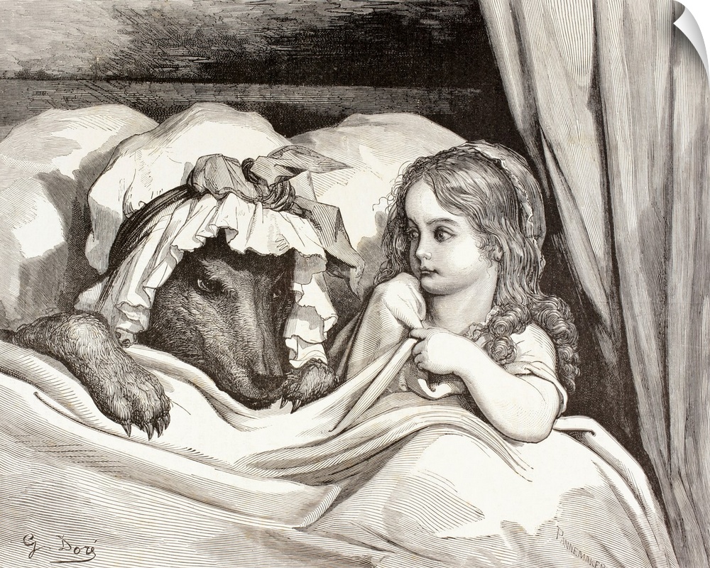 <p>Scene From Little Red Riding Hood By Charles Perrault. Little Red Riding Hood In Bed With The Wolf Who Is Dressed As Her Grandmother After Eating Her. What Big Teeth You Have! After A Work By Gustave Dore. From El Mundo Ilustrado, Published Barcelona, Circa 1880.</p>