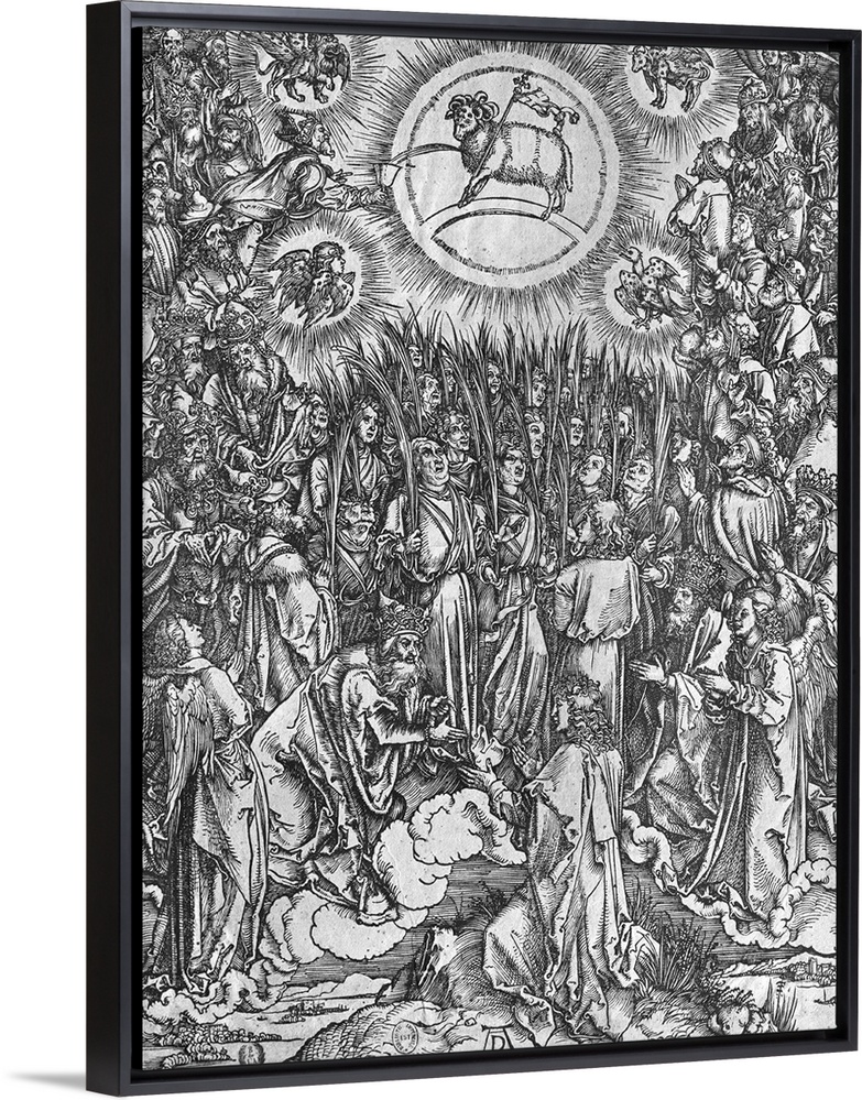 <p>Scene from the Apocalypse, Adoration of the Lamb, German edition, 1498 (originally woodcut) by Durer, Albrecht (1471-1528).</p>