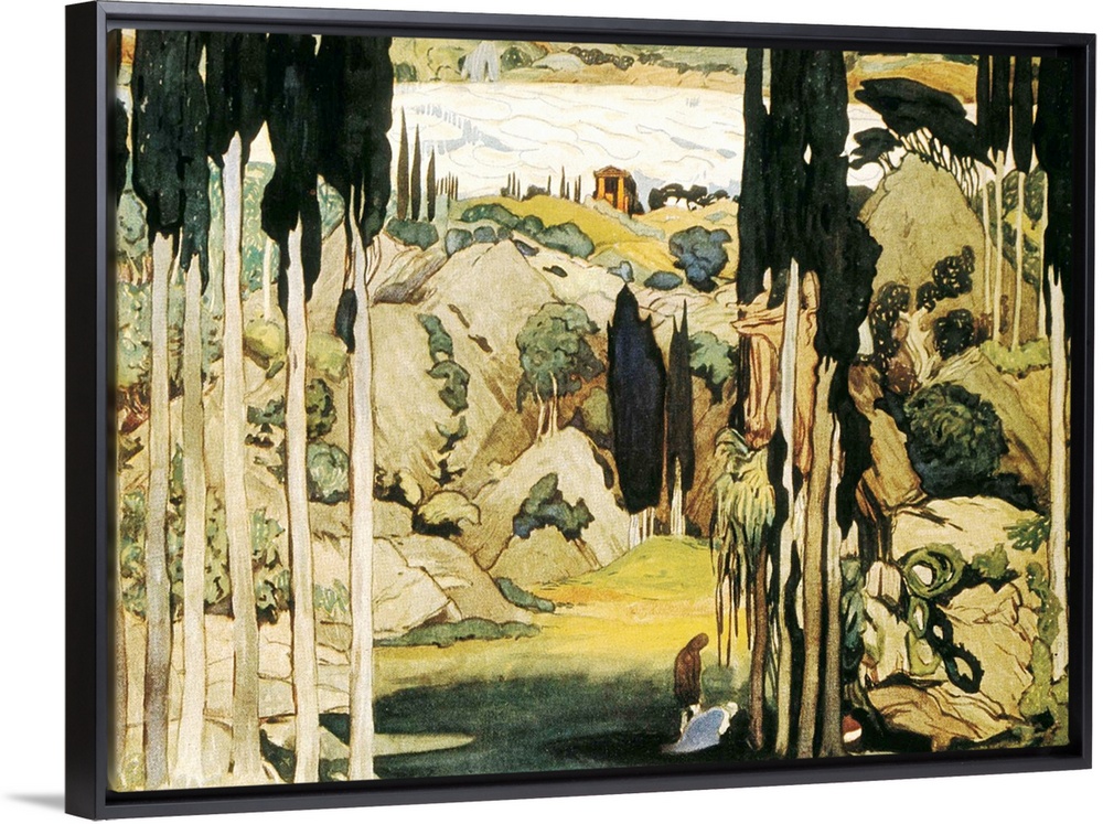 <p>BAKST, L..on (1866-1924). Daphnis et Chloe. 1912. Scenery for the ballet "Daphnis et Chloe" by Maurice Ravel for Diaghilev's Russian Ballet. Painting. .. AISA/Everett Collection</p>