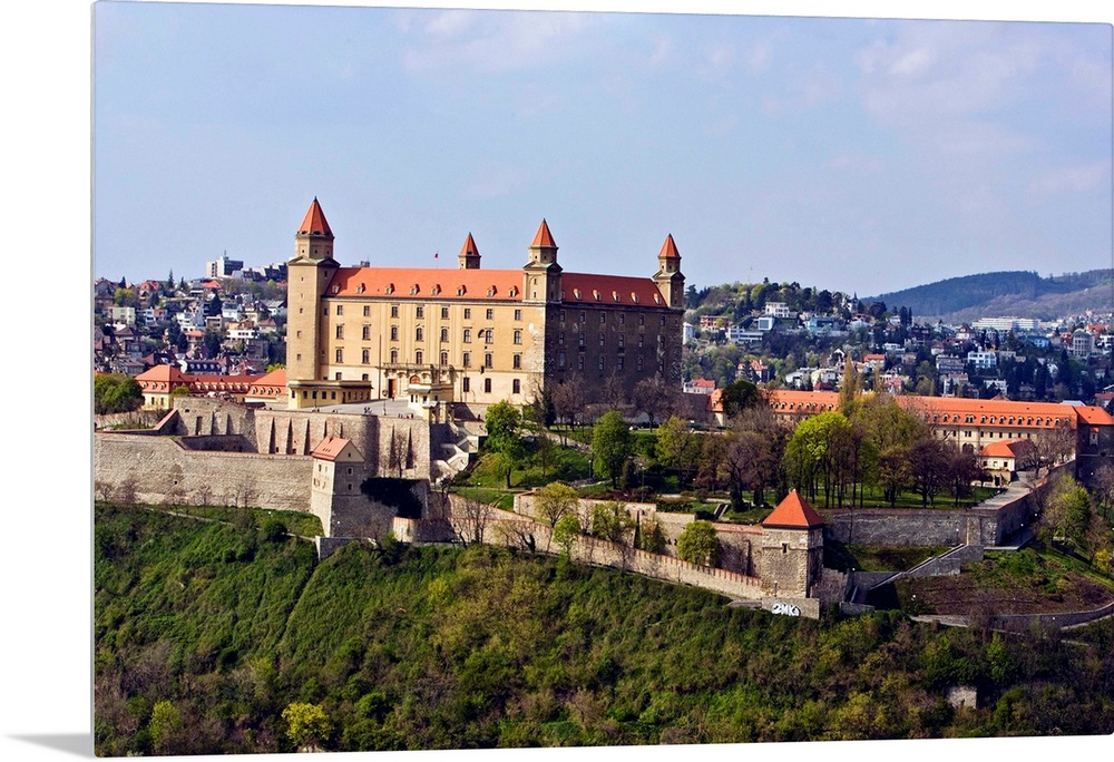 <p>Scenic of Bratislava City from the top of a restaurant above a bridge in Solvakia.</p>