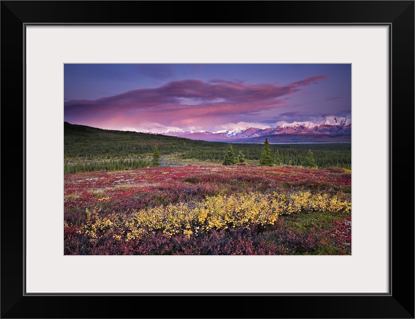 <p>Scenic View Of Alpine Tundra With Alaska Range In The Background With Alpenglow At Sunset In Denali National Park, Alaska</p>