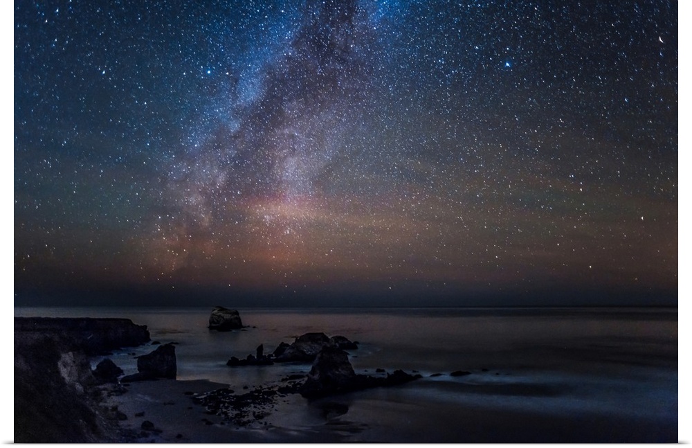 <p>Scenic view of beach against star field at night, Sand Dollar Beach, Plaskett Creek, Big Sur, California, USA</p>