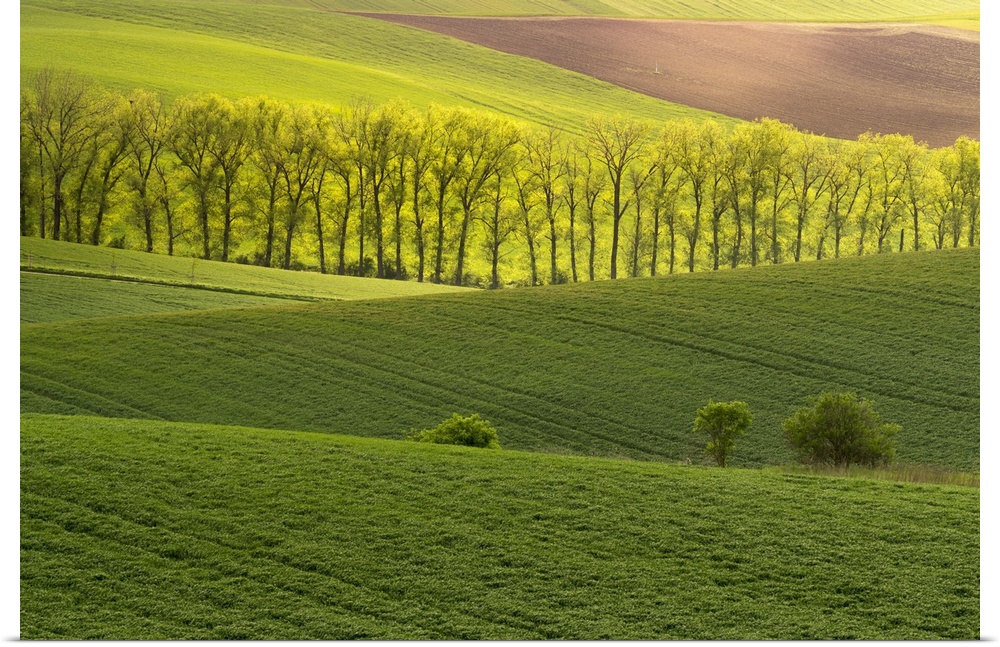 <p>Scenic view of green rolling hills near Kyjov, Hodonin District, South Moravian Region, Moravia, Czech Republic</p>