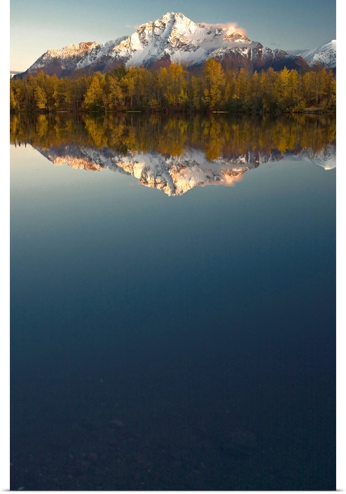 <p>Scenic view of Pioneer Peak reflecting in Echo Lake at sunset, Southcentral, Alaska</p>
