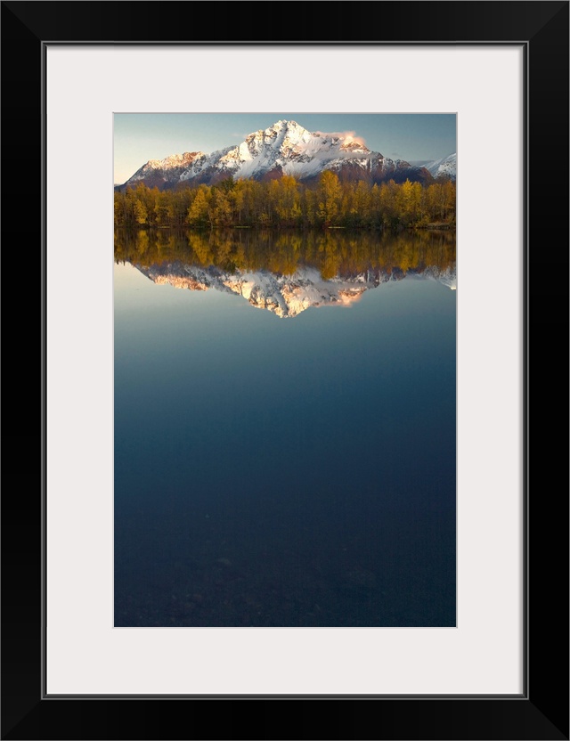 <p>Scenic view of Pioneer Peak reflecting in Echo Lake at sunset, Southcentral, Alaska</p>