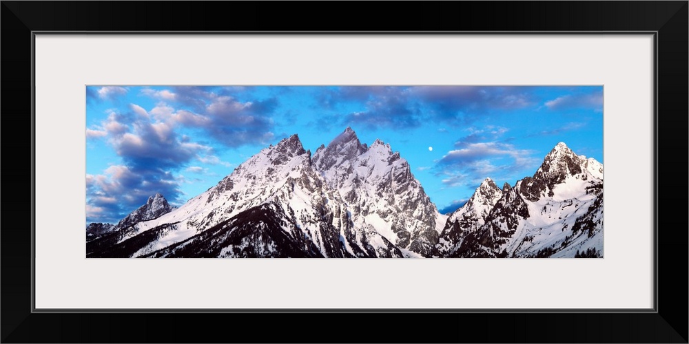 <p>Scenic view of snowcapped mountain range, Teton Range, Cathedral Group, Grand Teton National Park, Teton County, Wyoming, USA.</p>