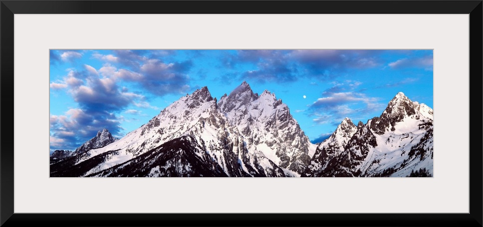 <p>Scenic view of snowcapped mountain range, Teton Range, Cathedral Group, Grand Teton National Park, Teton County, Wyoming, USA.</p>