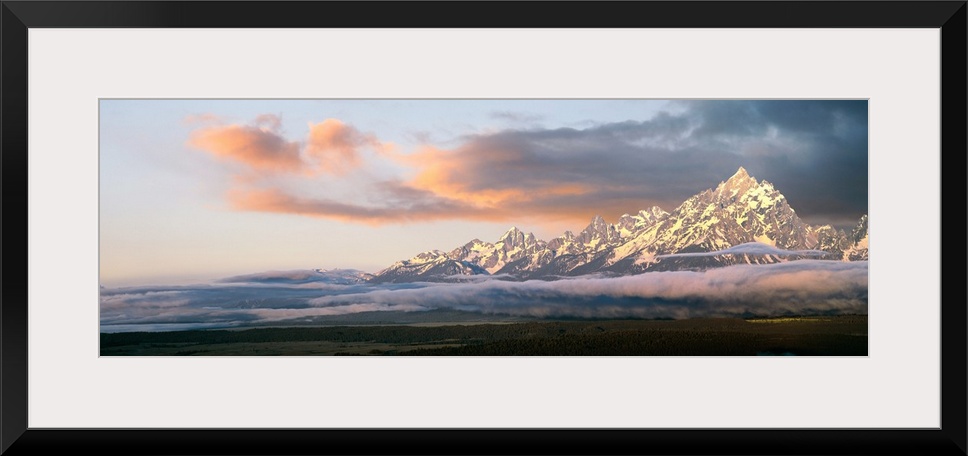 <p>Scenic view of Teton Range at sunrise, Grand Teton National Park, Teton County, Wyoming, USA.</p>