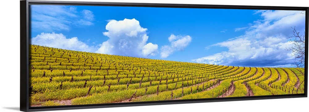 <p>Scenic view of vineyard in springtime, Napa Valley, Napa County, California, USA</p>