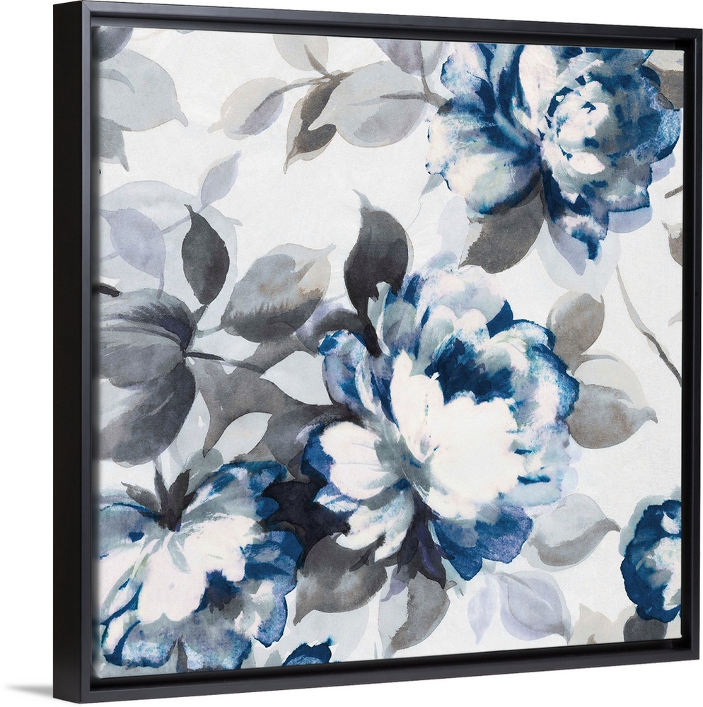 <p>Artwork of roses in shades of deep blue and grey.</p>