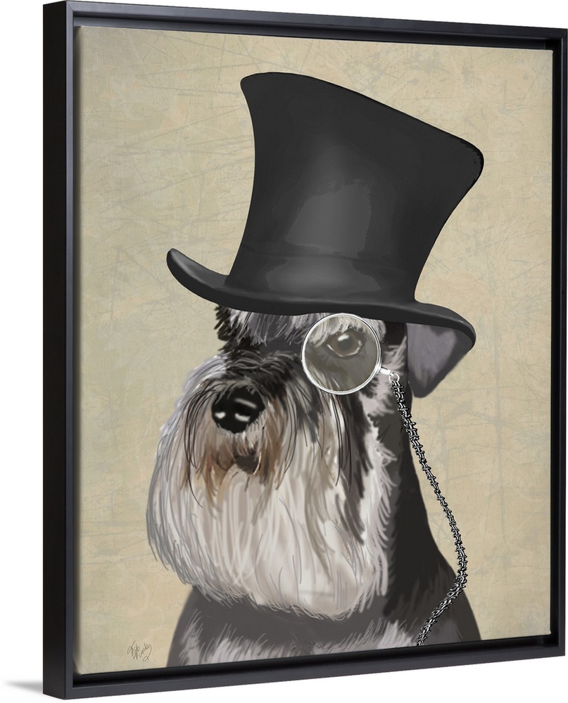 <p>A sharp-dressed schnauzer wearing a monocle and top hat.</p>