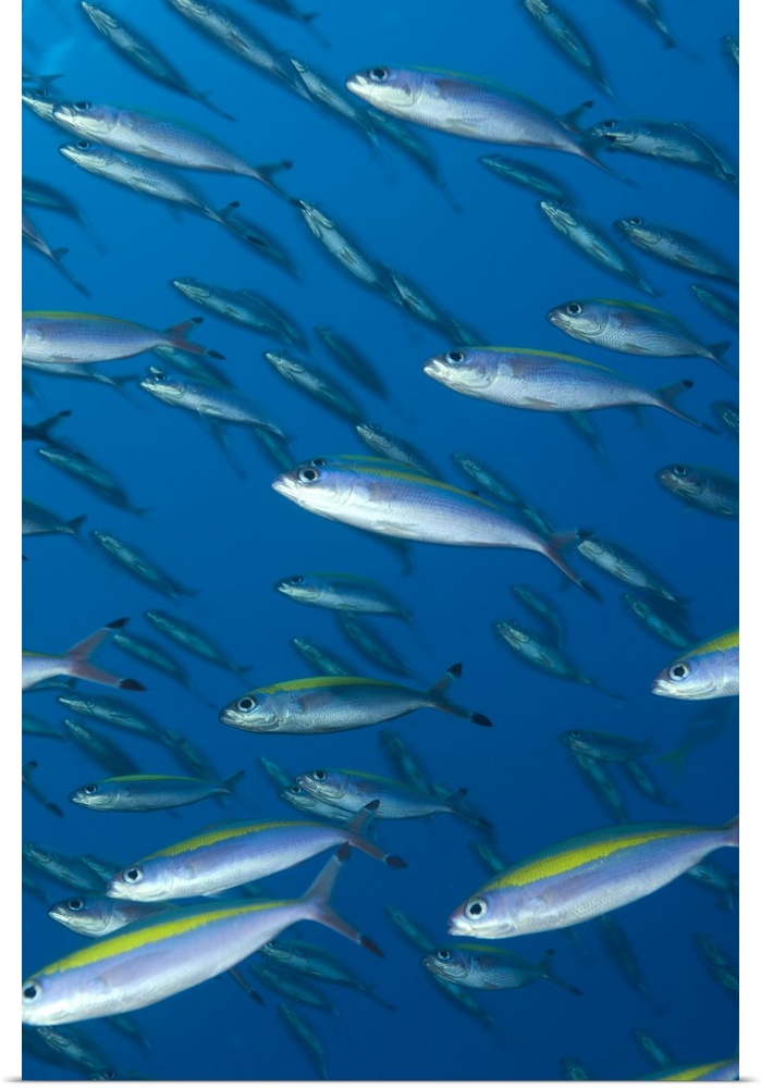<p>School of wide-band fusilier fish, Papua New Guinea.</p>