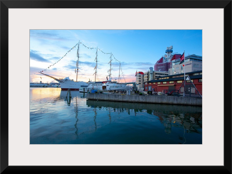 <p>School Ship in Harbour at dusk, Gothenburg, Sweden, Scandinavia, Europe.</p>