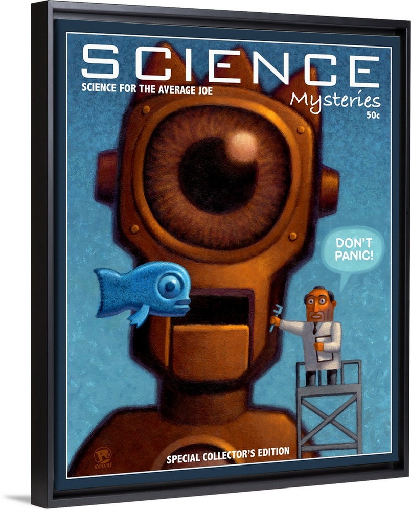 <p>Science Mysteries cover featuring a giant robot and the mad scientist who created him. Also, a flying fish.</p>