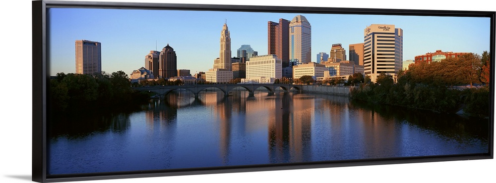 <p>Scioto River and Columbus Ohio skyline, with setting sunlight</p>