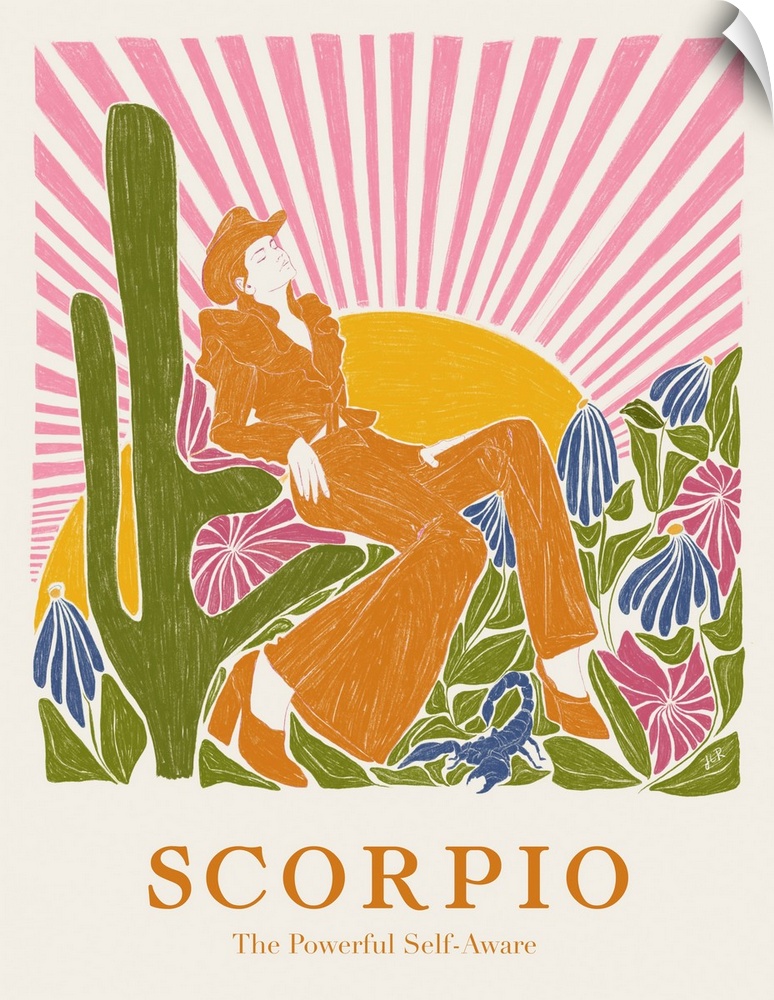 Art Astrology College Dorm Décor Contemporary Art Art For Your Zodiac Scorpio Drawing Desert Multicolor Wall Art People Figurative Jenny Liz Rome